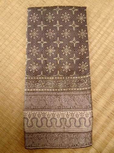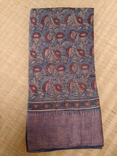 Kanchi Border Grey - Ajrakh Hand Block Printed Mangalgiri Pure Silk Cotton Saree