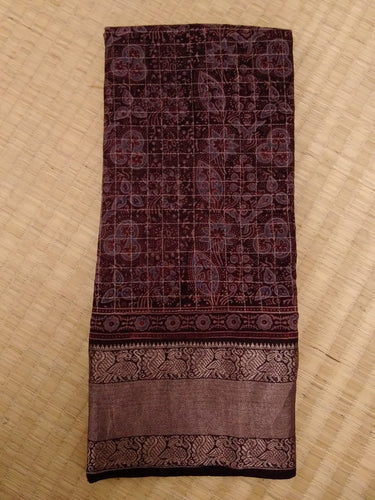 Kanchi Border Black - Ajrakh Hand Block Printed Mangalgiri Pure Silk Cotton Saree
